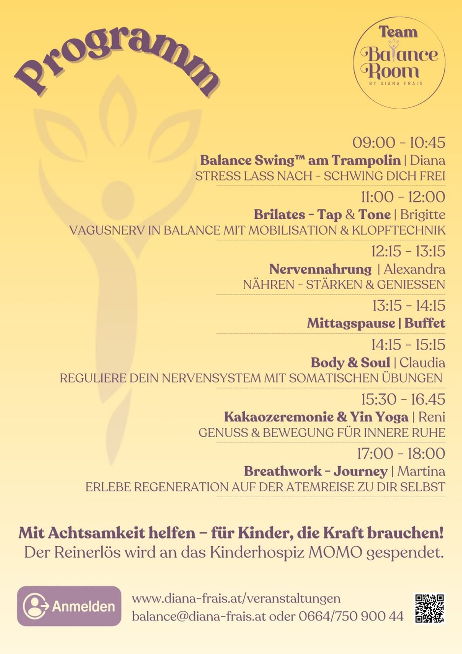 Gönn dir diesen Tag voller Bewegung, Regeneration, Achtsamkeit und Wissenswertes über dein Nervensystem und wie du wieder in Balance kommen kannst.